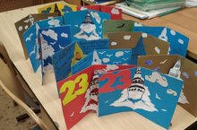 Ко дню защитника Отечества учащиеся 4а класса изготовили своими руками открытки для своих пап.