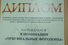 Учащиеся 4а класса награждены Дипломом за участие в школьном конкурсе в номинации "Оригинальные фотозоны".