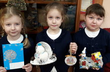 Учащиеся 1В класса: Гиниятуллина А; Петрушина А; Борисова С приняли участие в Городском конкурсе " Новогодняя игрушка моей семьи"