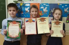 Поздравляем учеников 4а класса, принявших участие во Всероссийской олимпиаде школьного этапа: Лобачёва Ирина, предмет русский язык-1место и предмет математика-2 место; Власова Софья, предмет ОБЖ-1 место; Кучкин Данил, предмет математика-3 место.
