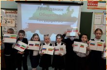 В 4 А классе (кл. рук-ль: Гайнуллина А. М.) прошёл урок по теме: «Гражданин. Общество. Государство», на котором у учащихся сформировались представления о том, что значит быть гражданином, расширились знания о государственной символике, познакомились с понятиями «закон», «парламент».