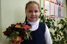 Ученица 4б класса Оюшина Валерия приняла участие в конкурсе осенних букетов с композицией "Осенняя палитра красок".