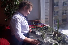 Учащиеся 4 В класса(кл.рук-ль:Андреева М.В.) выращивают в классе рассаду цветов для пришкольного участка:флоксы,петунию,космею,бархатцы.