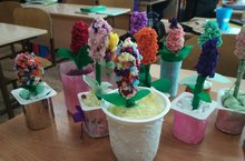 Самый радостный для нас!Ученики 1а класса(кл.рук.Фатыхова Л.И.) приготовили к 8 Марта для мам подарки- букеты цветов! -