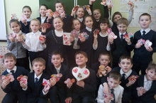 Ученики 3б класса подготовили для своих друзей валентинки и подарки. -
