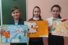 Селина В, Хайрутдинова К, Матвеев М, Шайхутдинова А. приняли участие в школьном конкурсе плакатов к Новому году. -