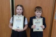 Ученики 1а класса Знаменская Мария и Журавлев Кирилл награждены дипломами Победителя в открытой олимпиаде для мл.школьников " Техника чтения"