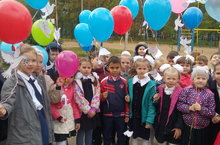 1А класс на линейке, посвященной международной акции "Голубь мира"
