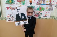 Ученик 2А класса Хакимов Данис совместно с родителями приготовил портрет прадедушки -участника Великой Отечественной войны для шествия на параде 9 мая.