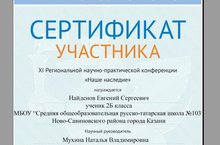 Ученик 2б класса Найдёнов Евгений (рук. Мухина Н.В.), принял участие в XI Региональной научно-практической конференции "Наше наследие".