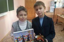 Ученики 3 в класса Матвеев М, Булкин Н.приняли участие в школьном конкурсе поделок "Дары осени".