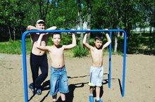 Хайрутдинов Амир(3б),Хайрутдинов Тимур(5а) вместе с папой тренируются на спорт.площадке.Молодцы!