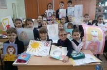 1 А класс принял активное участие в школьном конкурсе рисунков "Мамина улыбка".