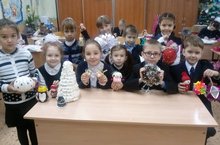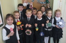 Ученики 1 А класса (кл. рук-ль: Гайнуллина А. М.) приняли активное участие в школьном конкурсе "Новогодняя игрушка".