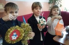 Ученики 1б класса представили новогодние игрушки, выполненные своими руками на конкурс "Новогодняя игрушка".