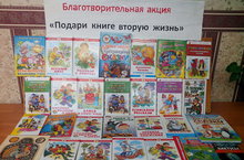 Из коллекции собранных книг оформлена выставка приуроченная к благотворительной акции "Подари книге вторую жизнь".Невозможно добиться подлинного успеха в жизни, не будучи знакомым с произведениями детской литературы из серии , "Школьная библиотека", "Мой первые книжки". Рада, что сегодня все больше растет понимание к данной благотворительной акции у нас в школе.. Пусть же эти замечательные книги станут для вас настоящим другом, мудрым учителем и добрым попутчиком.