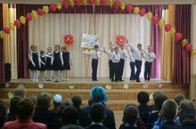 Учащиеся 2 в класса(кл. рук-ль: Андреева М. В.) приняли участие в концерте ко Дню пожилого человека с музыкальным номером "Мы матрешки вот такие крошки".