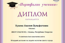 Ученица 4б класса Хузина Азалия (кл. рук Мухина Н.В.) награждена Дипломом за предоставление своей исследовательской работы на Общероссийском фестивале исследовательских и творческих работ учащихся «Портфолио ученика». Поздравляем!