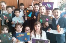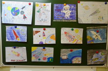 Ученики 4б класса (кл.рук. Мухина Н.В.) подготовили к Дню Космонавтики рисунки на тему "Мир тебе - наша Земля!" -
