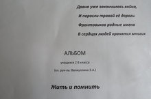 Учащиеся 2 В класса ( кл. рук.: Валиуллина Э.А.) продолжают собирать материал о родственниках, участвовавших в ВОВ, об их военных подвигах в честь празднования 70-летия Великой Победы советского народа над немецко-фашистскими захватчиками. И те, кто живёт сейчас, обязаны сохранить эту память.