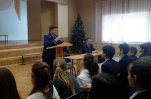 учащихся 7-8-9 классов со старшим помощником прокурора Ново- Савиновского района г.Казани капитаном юстиции Галимовым Айнуром Газинуровичем.