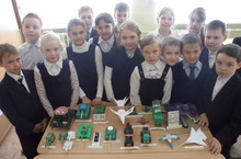 Ученики 3б класса организовали выставку военной техники. Это и самолёты, танки, «Катюши» и многое другое. Ребята использовали для поделок дерево, бумагу, картон, пластилин. Лучшей была признана работа Полканова Алексея «Гаубица».