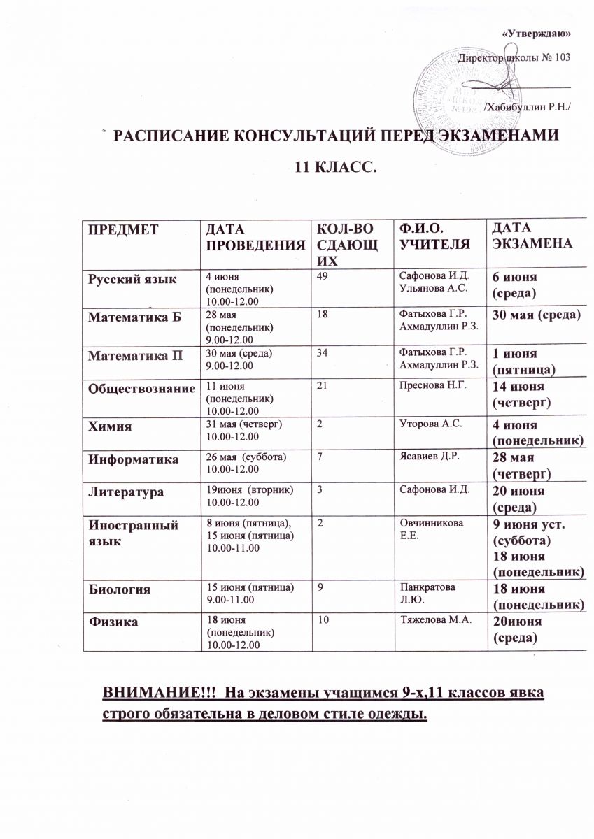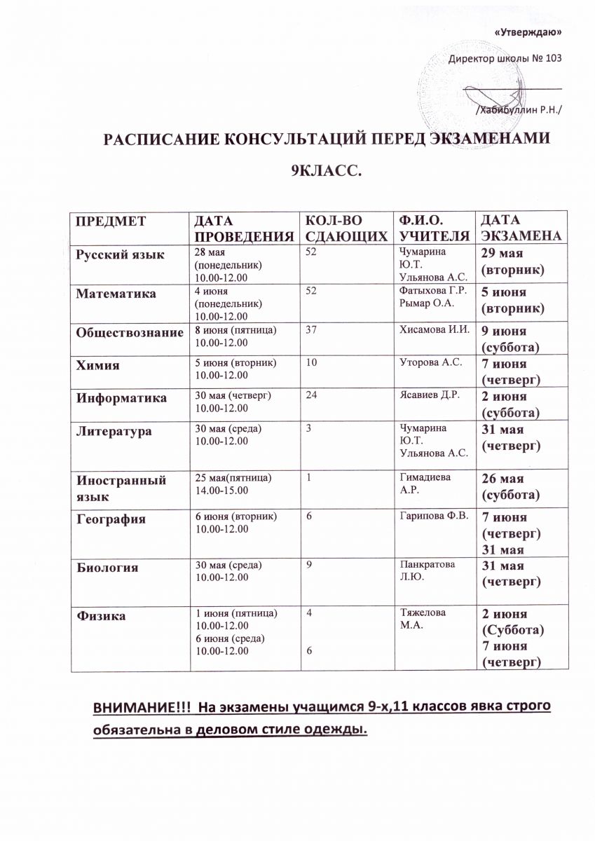 Расписание консультаций перед экзаменами 9 и 11 классы