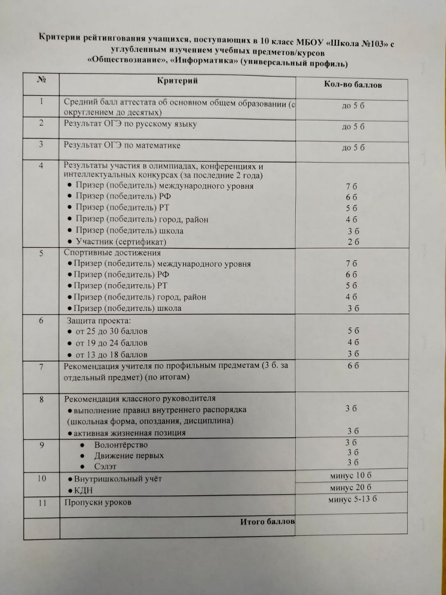 ПО ПРИЕМУ В 10 КЛАСС В МБОУ «ШКОЛА №103» НА 2023-2024 УЧЕБНЫЙ ГОД