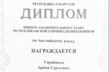 Поздравляем призёра регионального этапа Всероссийской олимпиады школьников по английскому языку Горяйнову Арину и ее учителя Медведеву Елену Сергеевну! Желаем вам дальнейших успехов! Так держать!