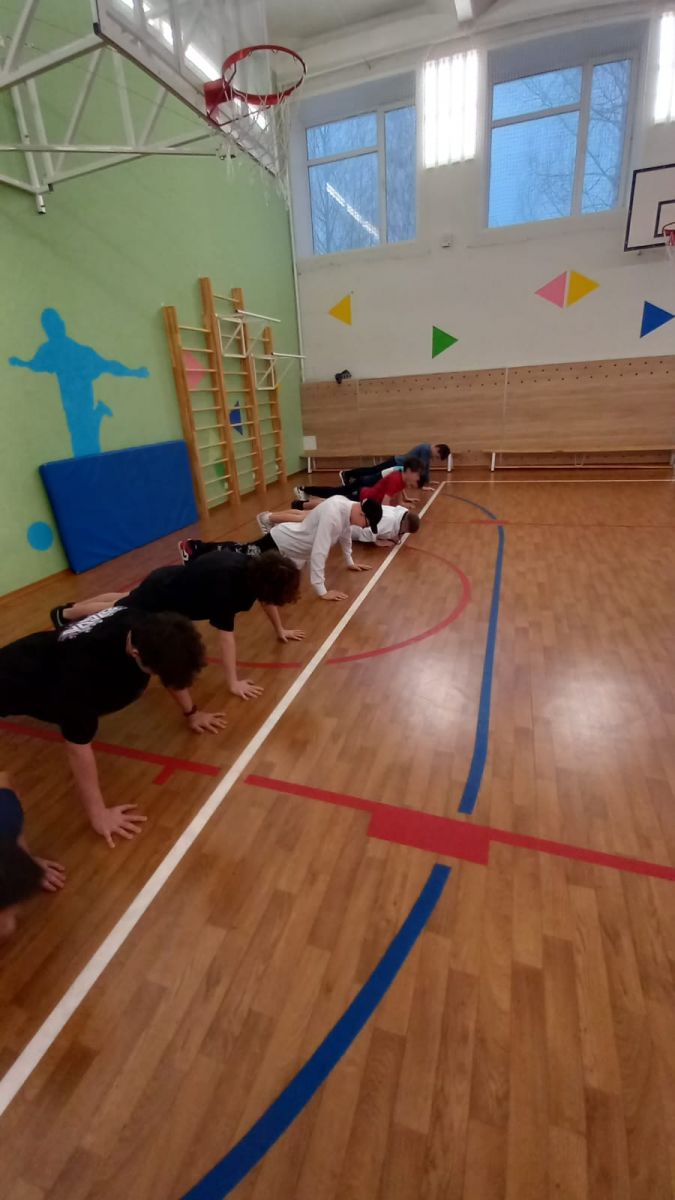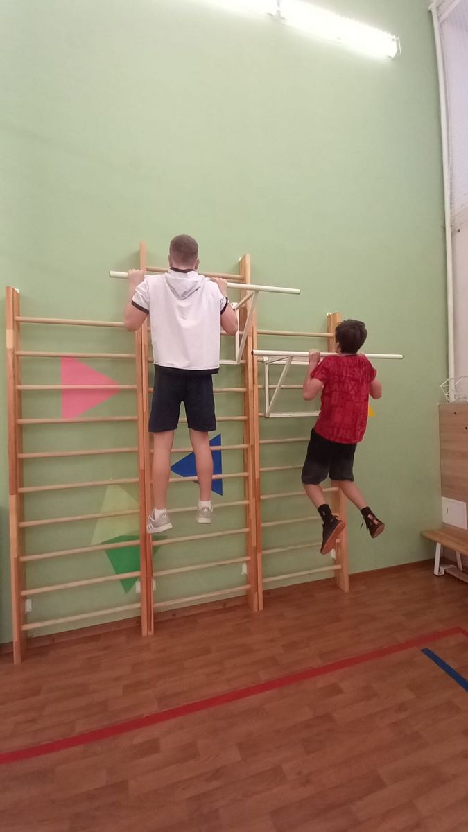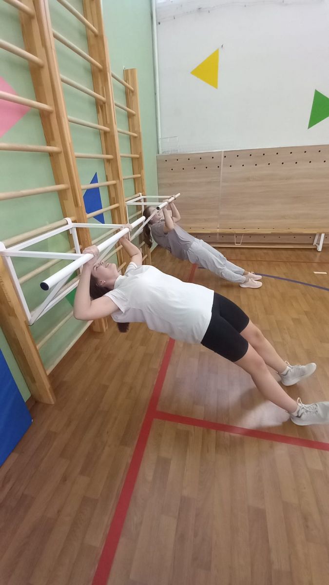 Учащиеся 8-9 классов сдают нормативы Комплекса ГТО, подтягивания на верхней и нижней перекладине, отжимание от пола