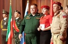 Отряд ЮНАРМИИ нашей школы на 4 региональном слете ВВПДЮОД "ЮНАРМИЯ". Командира отряда Антонову Валерию наградили медалью "Юнармейская доблесть" за активное участие в военно-патриотическом движении "ЮНАРМИЯ".