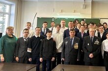 Классный час в 8в, 8г классе сегодня был посвящён 23 февраля. Перед ними выступили ветераны подводники Они рассказали об устройстве подводных лодок, о вахте, в каких морях и океанах плавали. Беседа была очень познавательной.