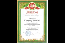 Поздравляем Сафарову Камилю, занявшую первое место в республиканском конкурсе юных переводчиков имени Ш. Мударриса (учителя: Садыкова Г.Х. - анг. яз и Бурханова А.И. - тат. яз)