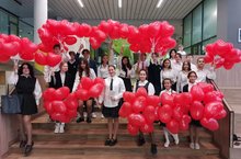 С раннего утра в фойе школы активисты встречали педагогов с шариками, праздничным открытка и и музыкой. Дарили не только подарки, но и самые тёплые слова.