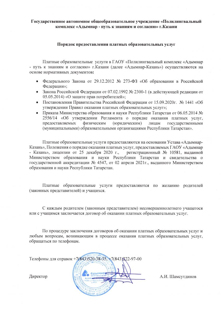 7) Приказ о платных образовательных услугах на 2023/2024 учебный год