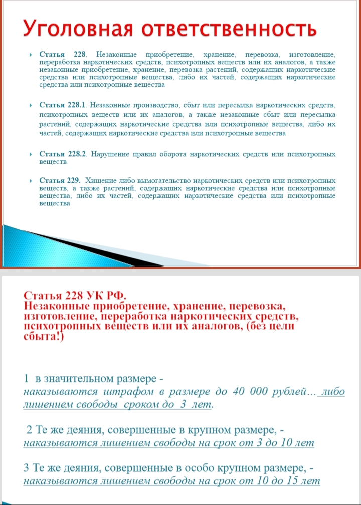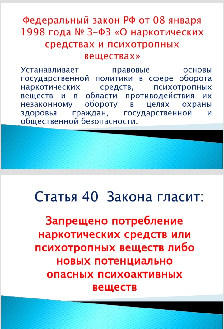 Мы предлагаем вашему вниманию методическую разработку - «Знаешь ли ты закон?», где обозначены законы и наказания, юридическая ответственность. Информируем, что любые действия с наркотическими веществами являются уголовно наказуемыми: будь то приобретение, хранение, транспортировка, продажа, организация потребления, изготовление и склонение к употреблению. «Будь готов! Скажи, нет!»