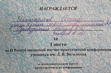 Ученик 9 класса Шангараев Йосыф занял 1 место на II Республиканской научно-практической конференции учащихся им. Д.В.Вилькеева 25.02.2020