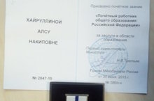 Алсу Накиповна имеет педагогический стаж 25 лет. В лицее-интернате №7 учитель работает с 2005 года. Высокий уровень профессиональной культуры Хайруллиной А.Н. - результат её непрерывного самообразования в области педагогики и методики преподавания предмета, творческого саморазвития, глубоких и всесторонних знаний математики. Свидетельством профессионализма учителя являются показатели обучения и поступления её учеников в ВУЗы.(98%) Ученики Алсу Накиповны регулярно занимают призовые места в районных, городских, республиканских и всероссийских олимпиадах.