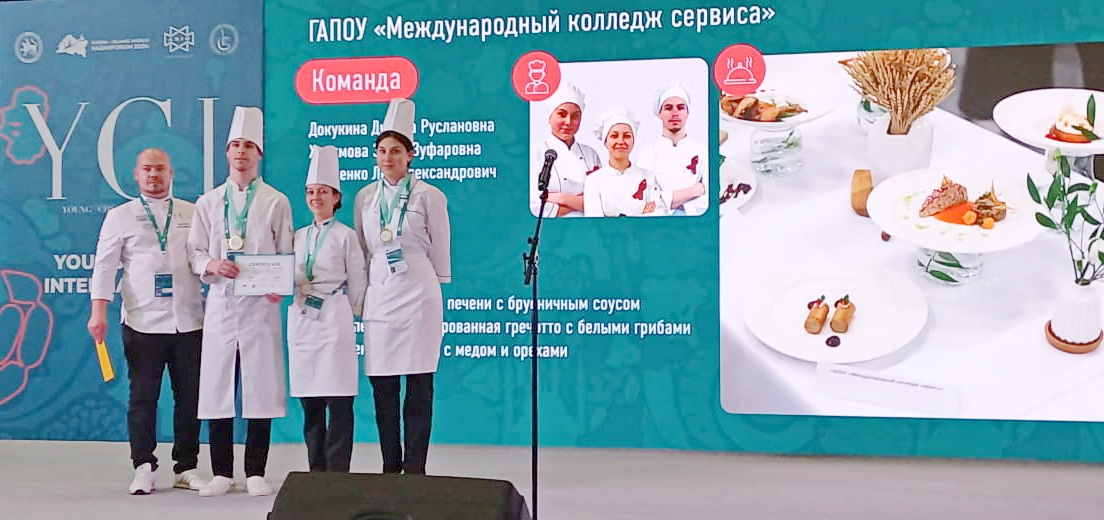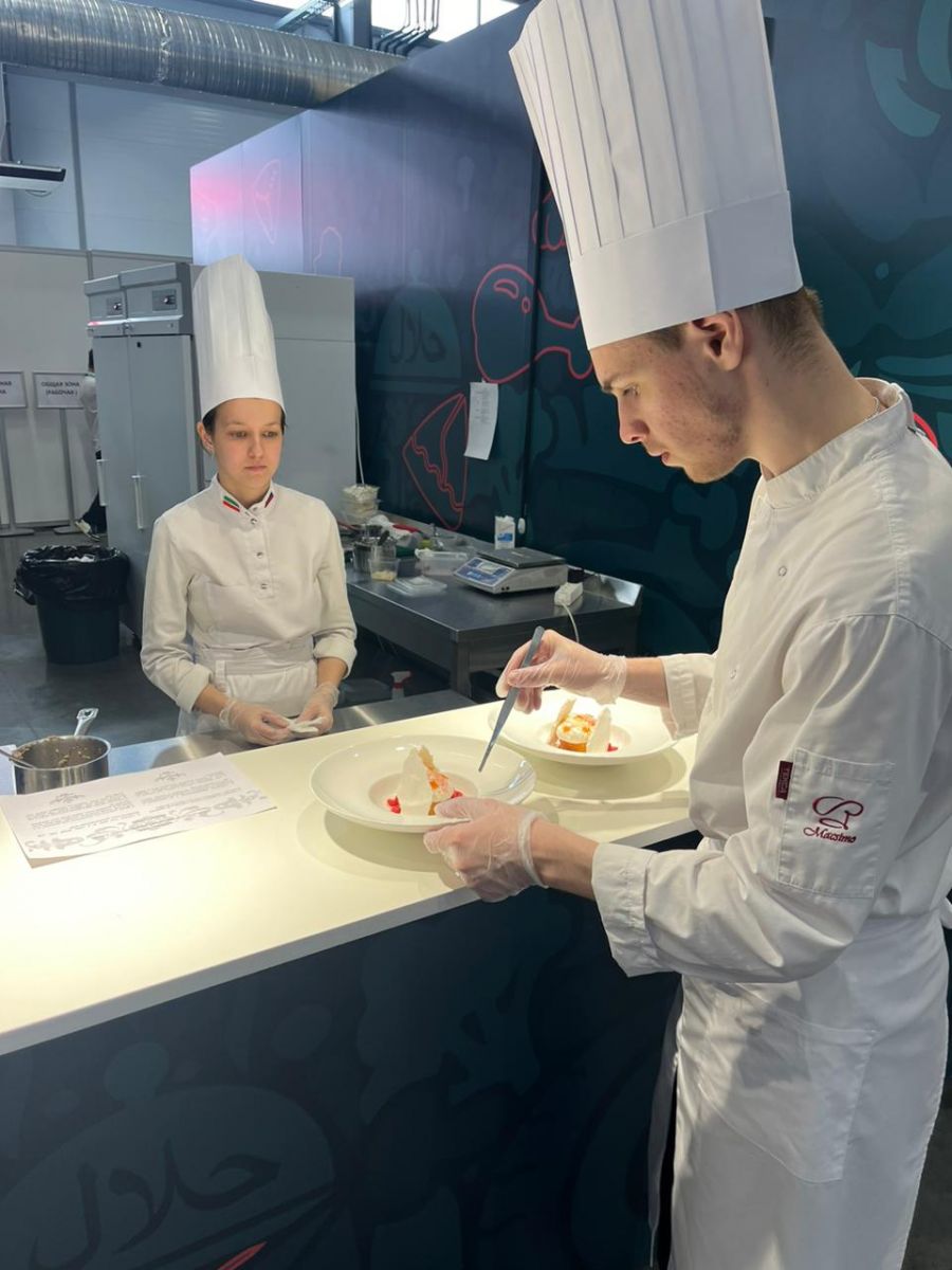Опубликовано: 15.05.202415 мая в рамках ХV Международного экономического форума «Россия – Исламский мир: KazanForum» в МВЦ «Казань Экспо» прошел фестиваль исламской кухни «Турнир поваров-юниоров имени Юнуса Ахметзянова – 2024». В турнире принимали участие начинающие талантливые повара в возрасте до 25 лет. Для участия им необходимо было представить сет из трех блюд с использованием локальных продуктов. За каждым финалистом в качестве наставника закреплен мастер-шеф – именитый и авторитетный шеф-повар из страны-участницы. Соревновались в турнире команды из 11 стран мира, где участники колледжа завоевали высшую награду «Гран-при».