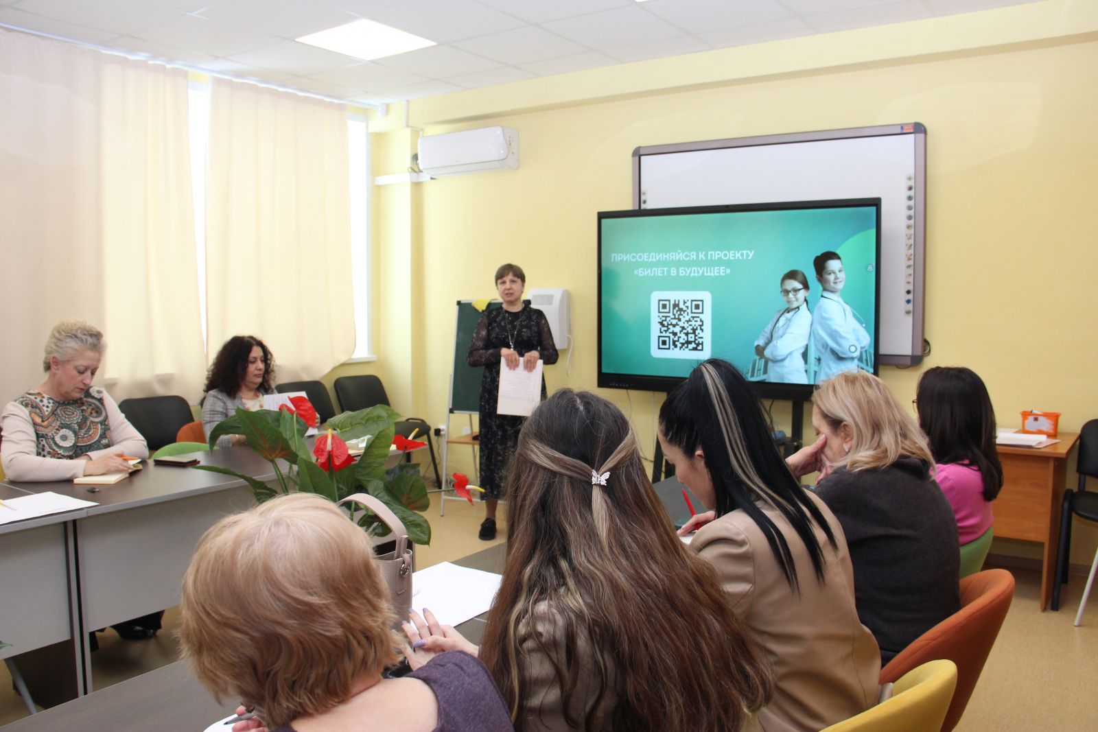 На встрече Юлия Юрьевна рассказала о реализации проекта по формированию готовности к профессиональному самоопределению обучающихся 6-11 классов образовательных организаций под названием “Билет в будущее”. Данный проект содержит современную и эффективную программу профессиональной ориентации, которая выполняет опережающую и прогностическую функции, способствует развитию у обучающихся готовности к выбору будущей профессии.