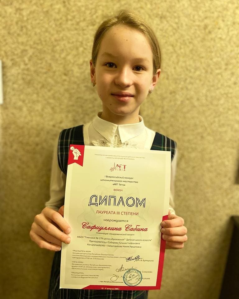 Ученица нашей школы Сафиуллина Сабина стала лауреатом III степени!