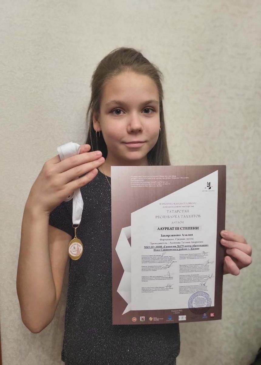 Поздравляем Закирзянову Азалию со званием Лауреата lll степени