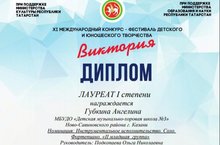 Поздравляем Лауреатов I степени Международного конкурса-фестиваля детского и юношеского творчества "Виктория" Губкина Дениса и Губкину Ангелину, класс преподавателя Подкопаевой Ольги Николаевны!