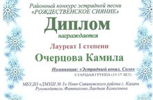 Поздравляем участников районного конкурса эстрадной песни "Рождественское сияние" Лауреата I степени Очерцову Камилу, Козлову Младу, Лауреата III степени Иванову Марию и их преподавателя Фаттахову Ландыш Камиловну!