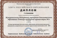 ЭЛИТА РОССИЙСКОГО ОБРАЗОВАНИЯ Диплом I степени Лауреата Национальной премии присвоили Муниципальному бюджетному учреждению дополнительного образования "Детская музыкально-хоровая школа №3" в номинации "Лучшая организация дополнительного образования, реализующая программы гражданского, патриотического и духовно-нравственного воспитания детей - 2015".