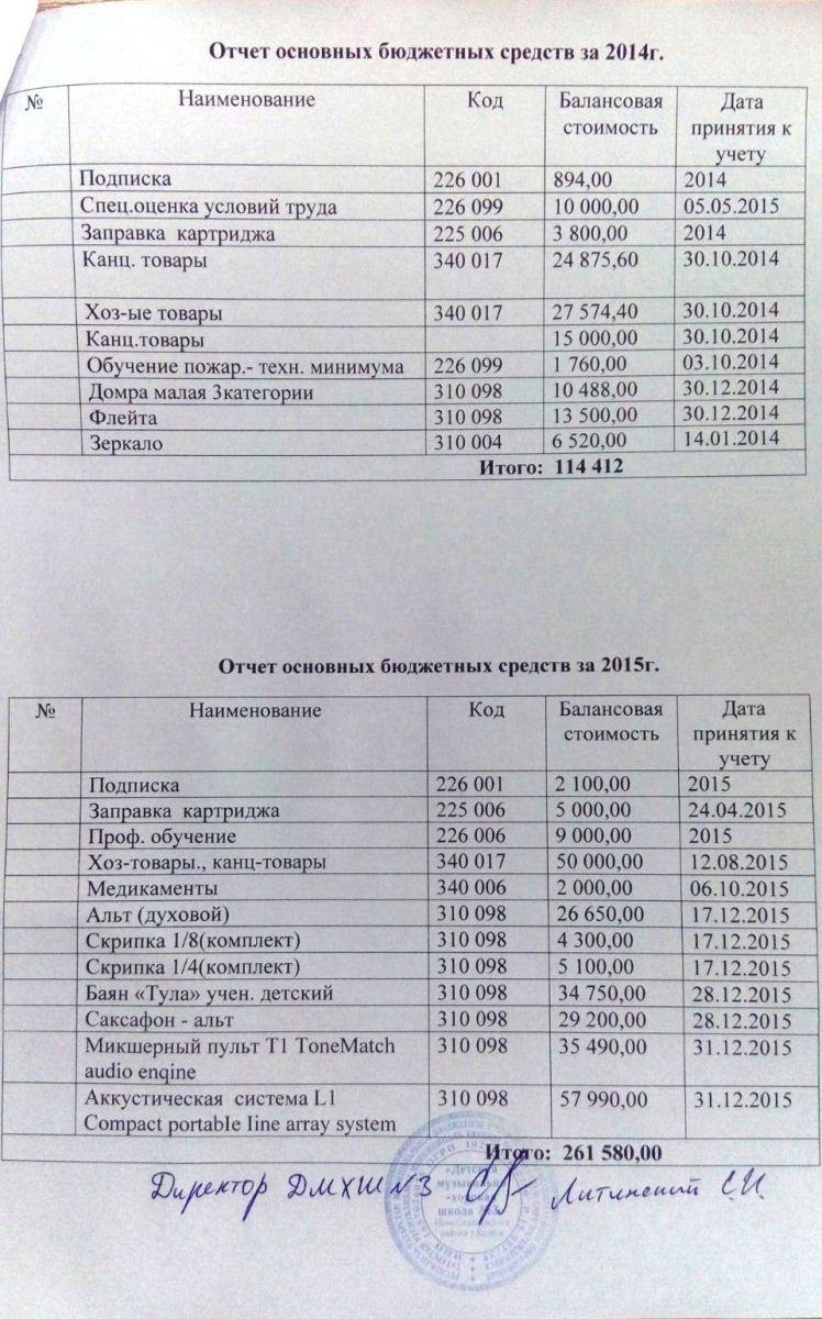 Отчет основных бюджетных средств за 2014, 2015 года