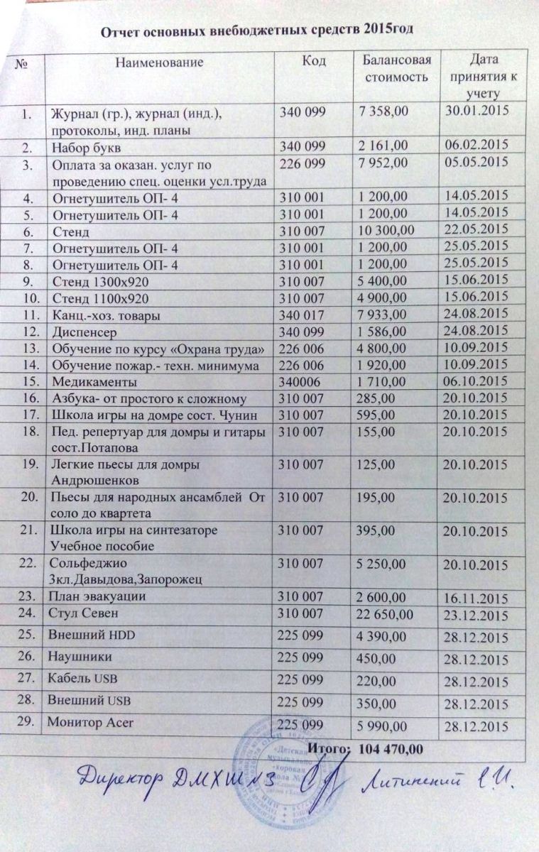 Отчет основных внебюджетных средств за 2015 год