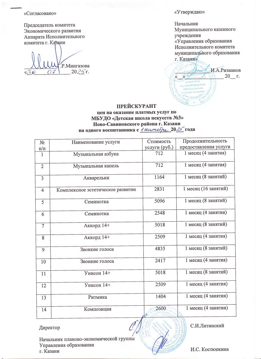 Прейскурант на оказание платных услуг 2025-2026 уч.г