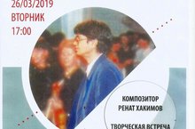 26 марта в центре современной музыки Софии Губайдуллиной состоялась творческая встреча композитора Рената Хакимова с молодыми композиторами и музыковедами в рамках дискуссионного клуба «Контрапункт» на тему: «Современная музыка и духовность. Пути развития». Ренат Фаильевич пришёл в наш коллектив и мы гордимся, что являемся его коллегами.