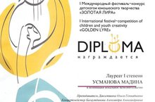 Поздравляем Усманову Мадину- лауреата 1 степени , участницу 1 Международного конкурса-фестиваля "Золотая лира"